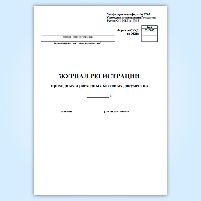 Журнал регистрации приходных и расходных кассовых документов (форма № КО-3) в Обнинске купить