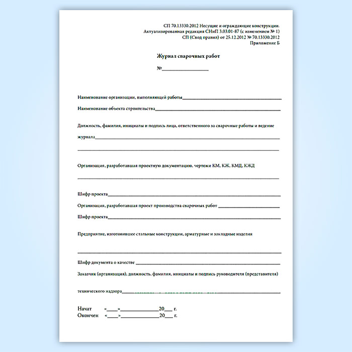 Журнал сварочных работ (приложение к СП 70.13330.2012) в Обнинске купить