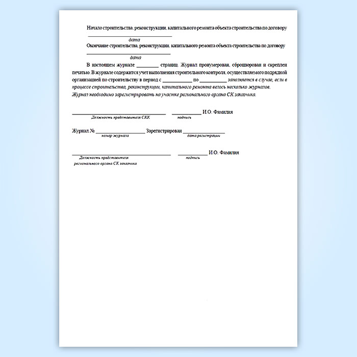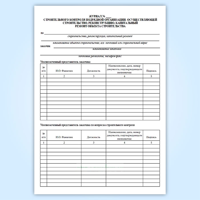 Журнал строительного контроля подрядной организации в Обнинске купить