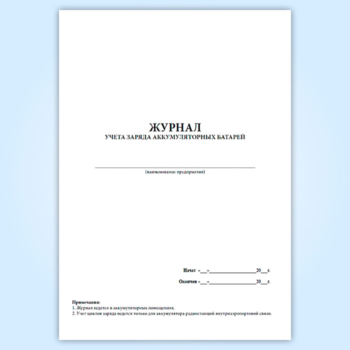 Журнал учета заряда аккумуляторных батарей в Обнинске купить