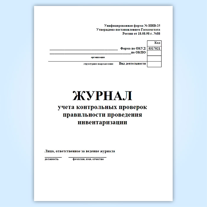 Журнал учета контрольных проверок правильности проведения инвентаризаций (форма ИНВ-25) в Обнинске купить