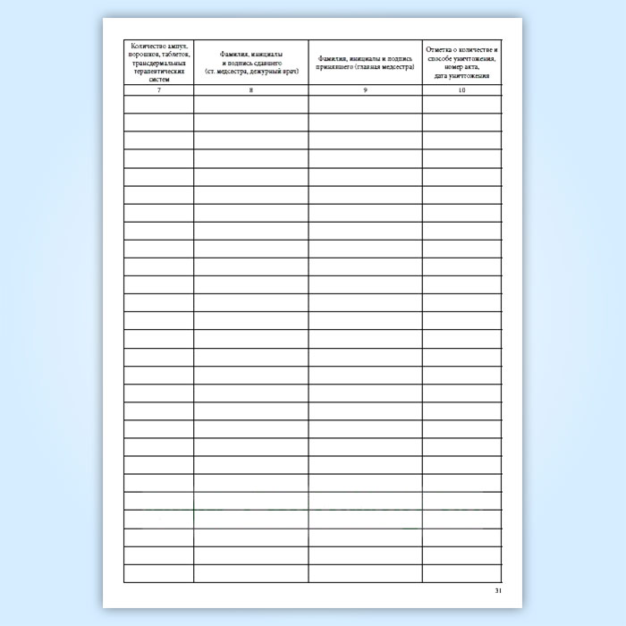 Журнал учета неиспользованных рецептурных бланков на наркотическое средство или психотропное вещество и остатков неиспользованных наркотических средств и психотропных веществ, сданных доверенными лицами умерших больных, у главной медицинской сестры амбулаторного отделения медицинской организации в Обнинске купить