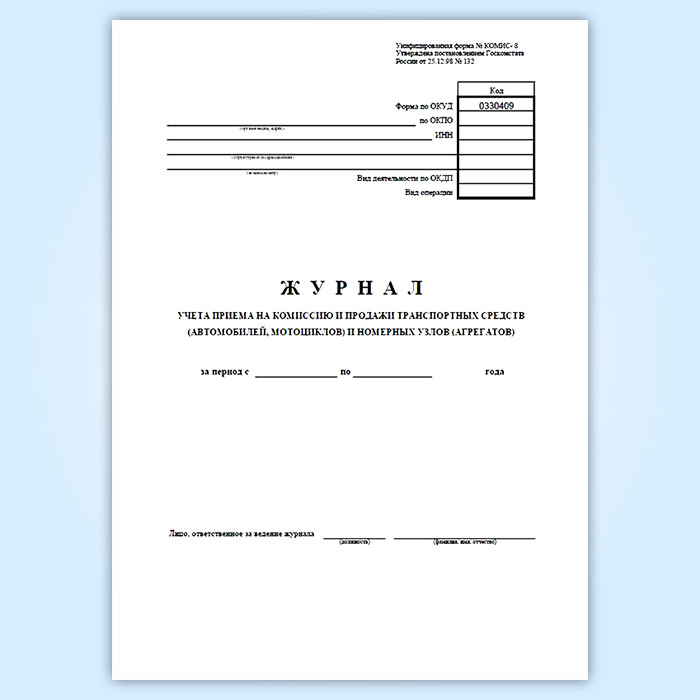 Журнал учета приема на комиссию и продажи транспортных средств (автомобилей, мотоциклов) и номерных узлов (агрегатов) (форма № КОМИС-8) в Обнинске купить