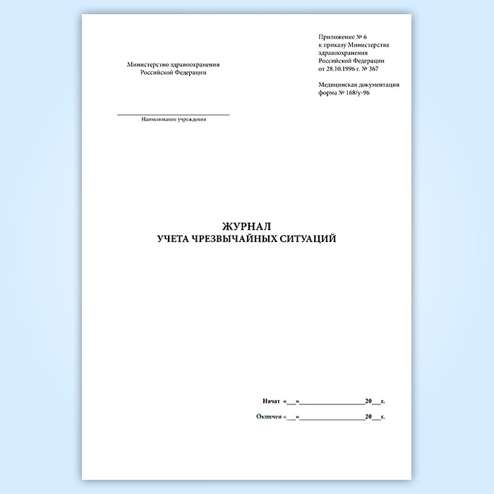 Журнал чрезвычайных ситуаций (форма № 168/у-96) в Обнинске купить