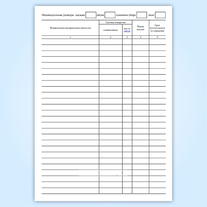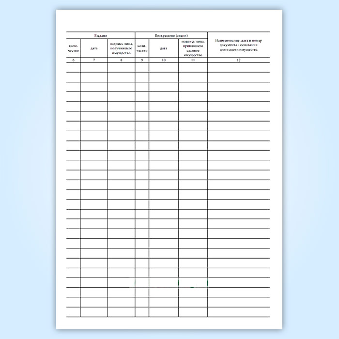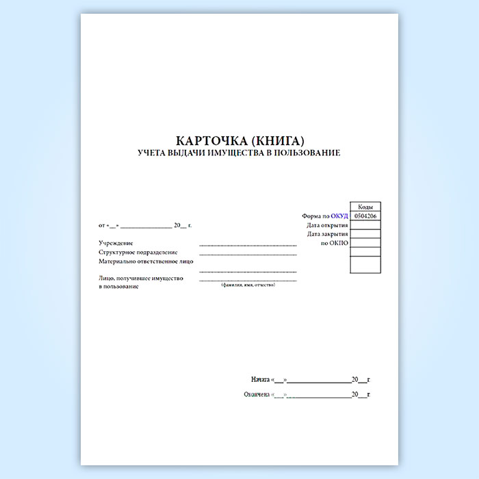 Карточка (книга) учета выдачи имущества в пользование (форма по ОКУД 0504206) в Обнинске купить