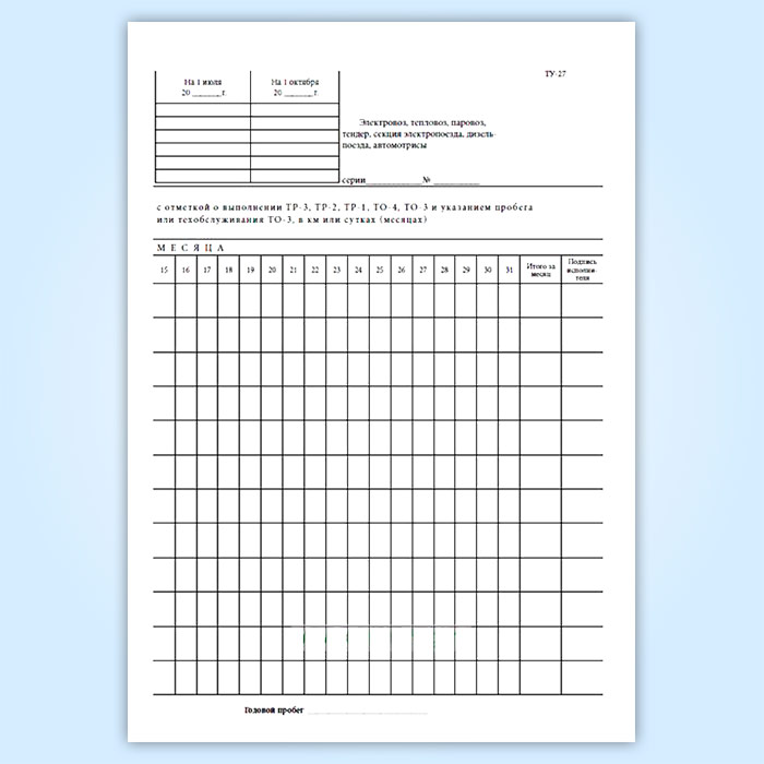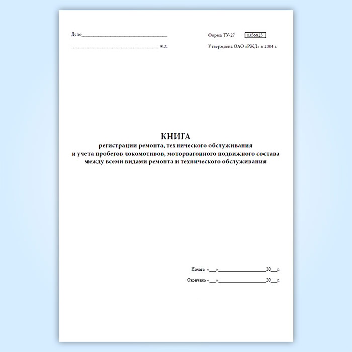 Книга регистрации ремонта, технического обслуживания и учета пробегов локомотивов, моторвагонного подвижного состава между всеми видами ремонта и технического обслуживания (форма ТУ-27) в Обнинске купить