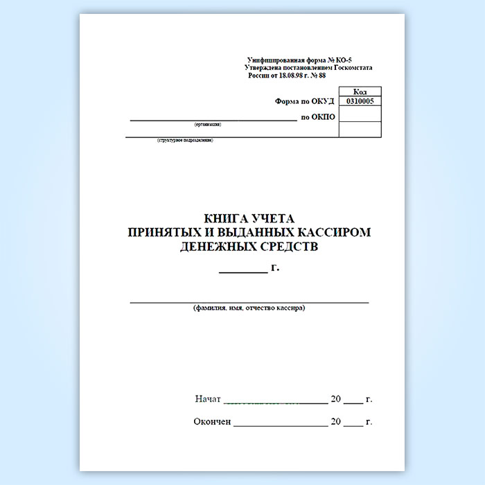 Книга учета принятых и выданных кассиром денежных средств (форма № КО-5) в Обнинске купить