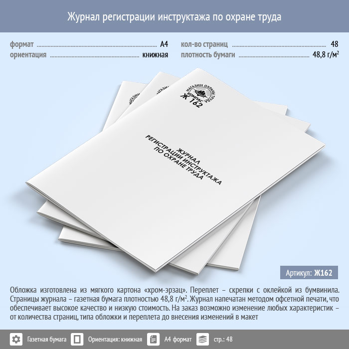 Журнал регистрации инструктажа по охране труда (48 стр., Ж162) в Обнинске купить