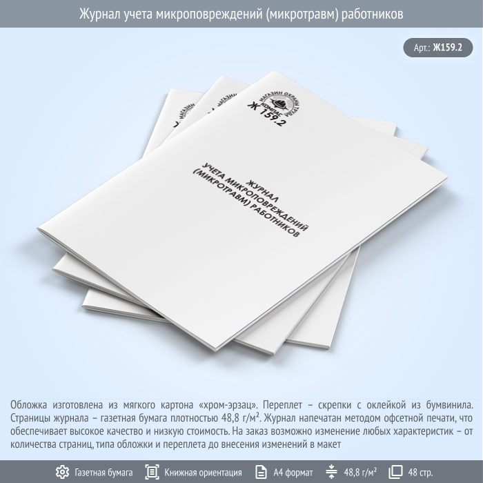 Журнал учета микроповреждений (микротравм) работников (48 стр., Ж159.2) в Обнинске купить