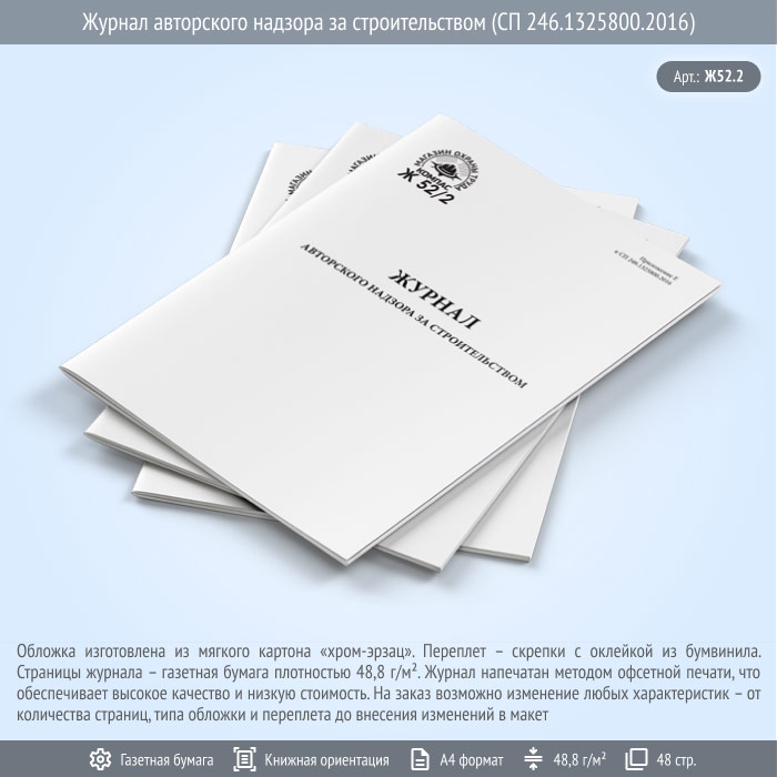 Журнал авторского надзора за строительством (СП 246.1325800.2016) (48 стр., Ж52.2) в Обнинске купить