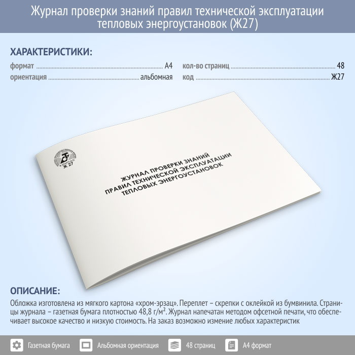 Журнал проверки знаний правил технической эксплуатации тепловых энергоустановок (48 стр., Ж27) в Обнинске купить