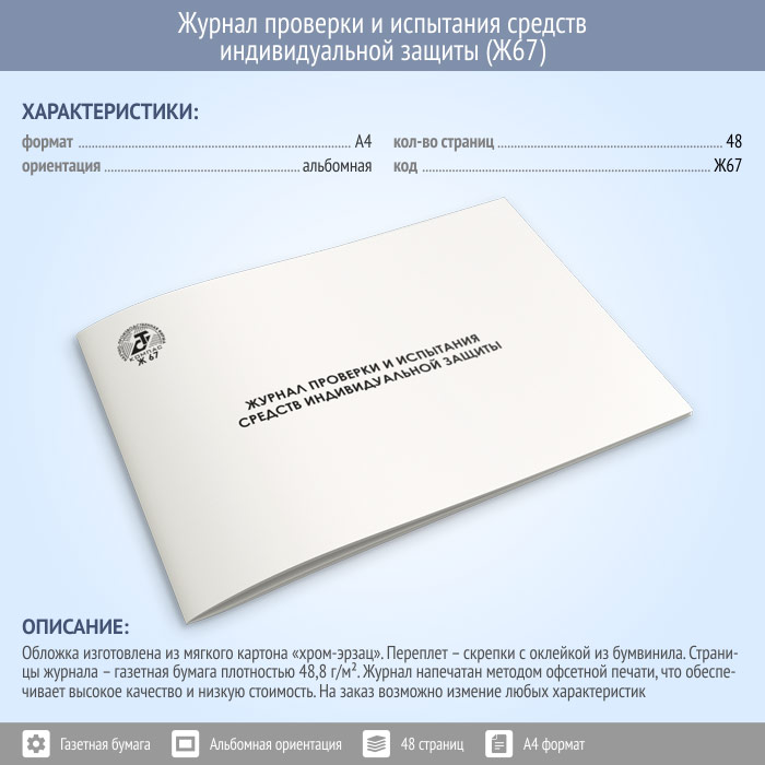 Журнал проверки и испытания средств индивидуальной защиты (48 стр., Ж67) в Обнинске купить