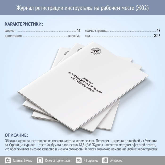Журнал регистрации инструктажа на рабочем месте (48 стр., Ж02) в Обнинске купить