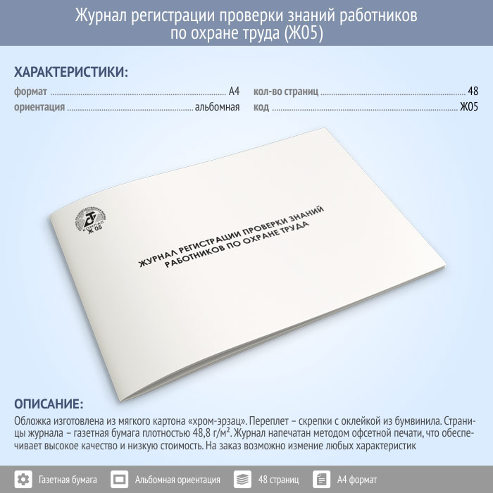 Журнал регистрации проверки знаний работников по охране труда (48 стр., Ж05) в Обнинске купить