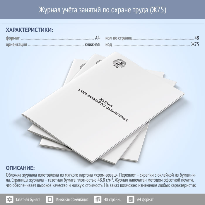 Журнал учета занятий по охране труда (48 стр., Ж75) в Обнинске купить
