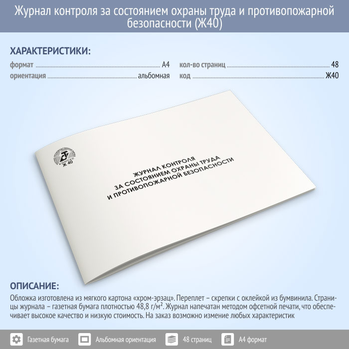 Журнал контроля за состоянием охраны труда и противопожарной безопасности (48 стр., Ж40) в Обнинске купить