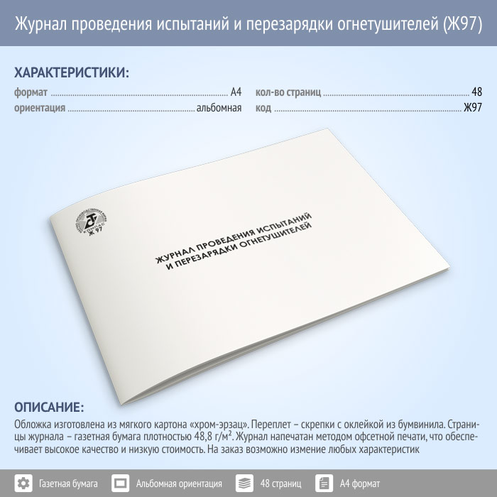 Журнал проведения испытаний и перезарядки огнетушителей (48 стр., Ж97) в Обнинске купить