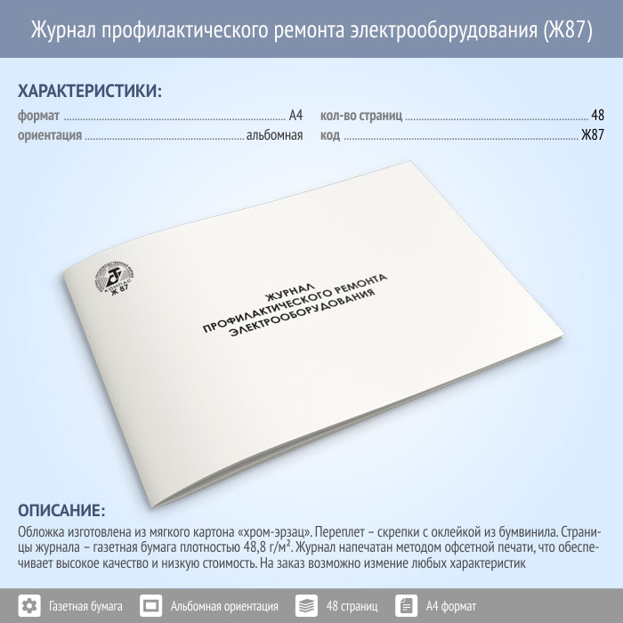 Журнал профилактического ремонта электрооборудования (48 стр., Ж87) в Обнинске купить
