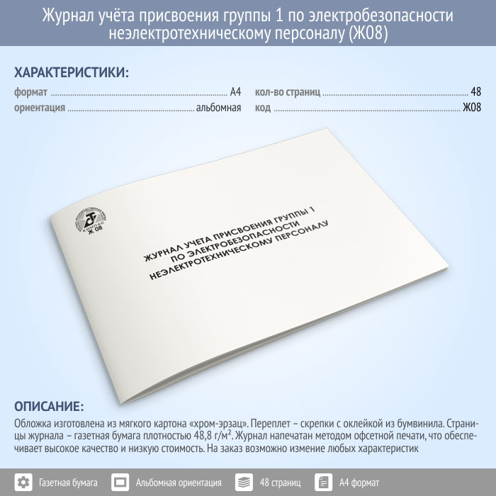 Журнал учета присвоения группы 1 по электробезопасности неэлектротехническому персоналу (48 стр., Ж08) в Обнинске купить