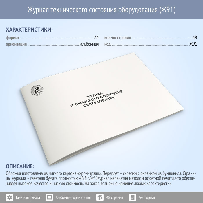Журнал технического состояния оборудования (48 стр., Ж91) в Обнинске купить