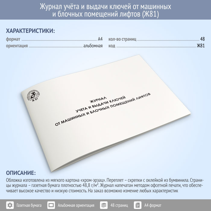 Журнал учета и выдачи ключей от машинных и блочных помещений лифтов (48 стр., Ж81) в Обнинске купить