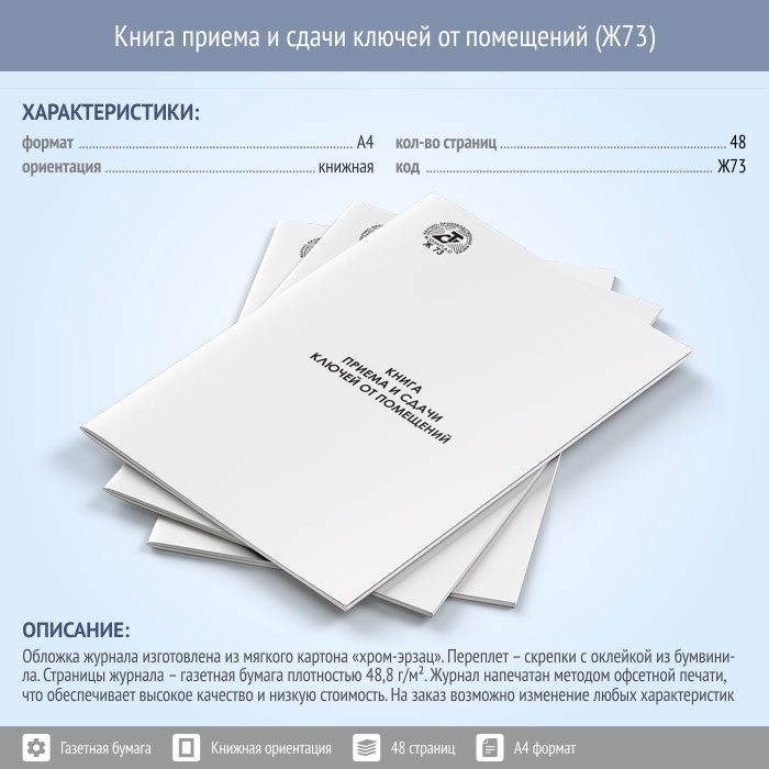 Книга приема и сдачи ключей от помещений (48 стр., Ж73) в Обнинске купить