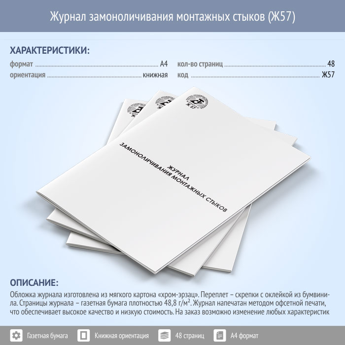 Журнал замоноличивания монтажных стыков (48 стр., Ж57) в Обнинске купить