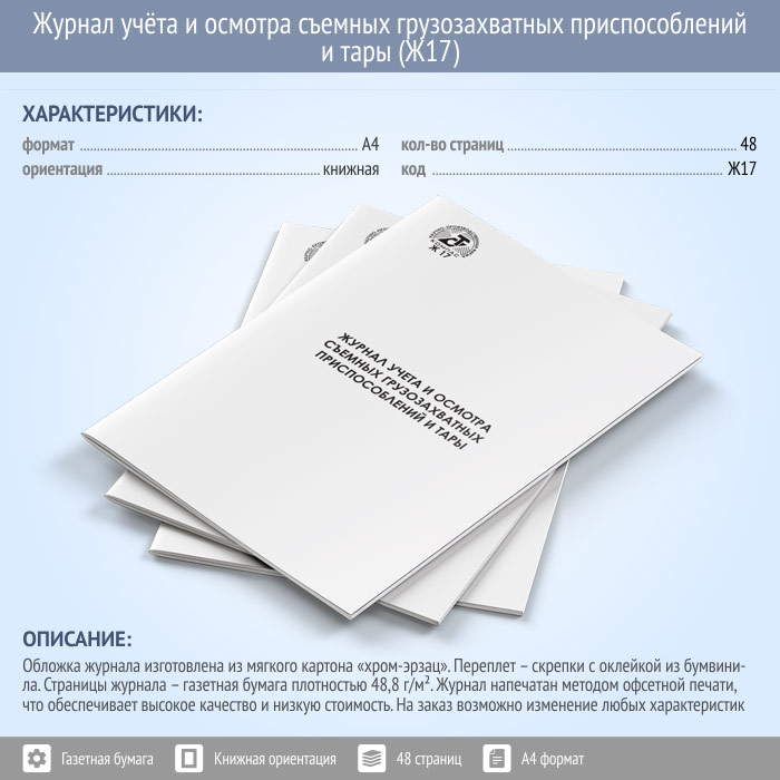 Журнал учета и осмотра съемных грузозахватных приспособлений и тары (48 стр., Ж17) в Обнинске купить