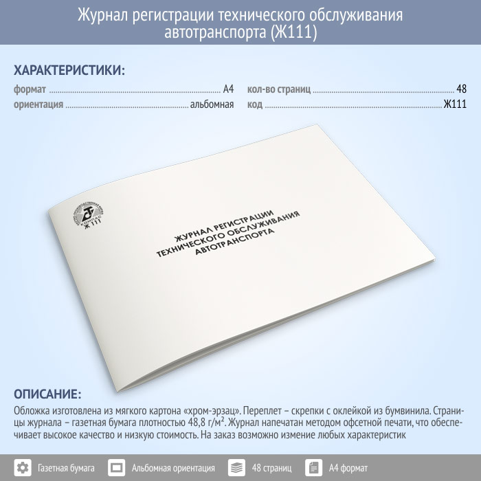 Журнал регистрации технического обслуживания автотранспорта (48 стр., Ж111) в Обнинске купить
